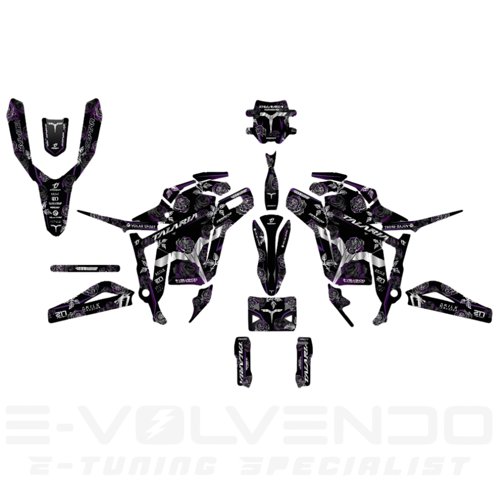 Kit adesivi Talaria Sting - PURPLE ROSES è una linea di grafiche completamente innovativa che riuscirà a soddisfare i gusti anche dei caratteri più sofisticati.