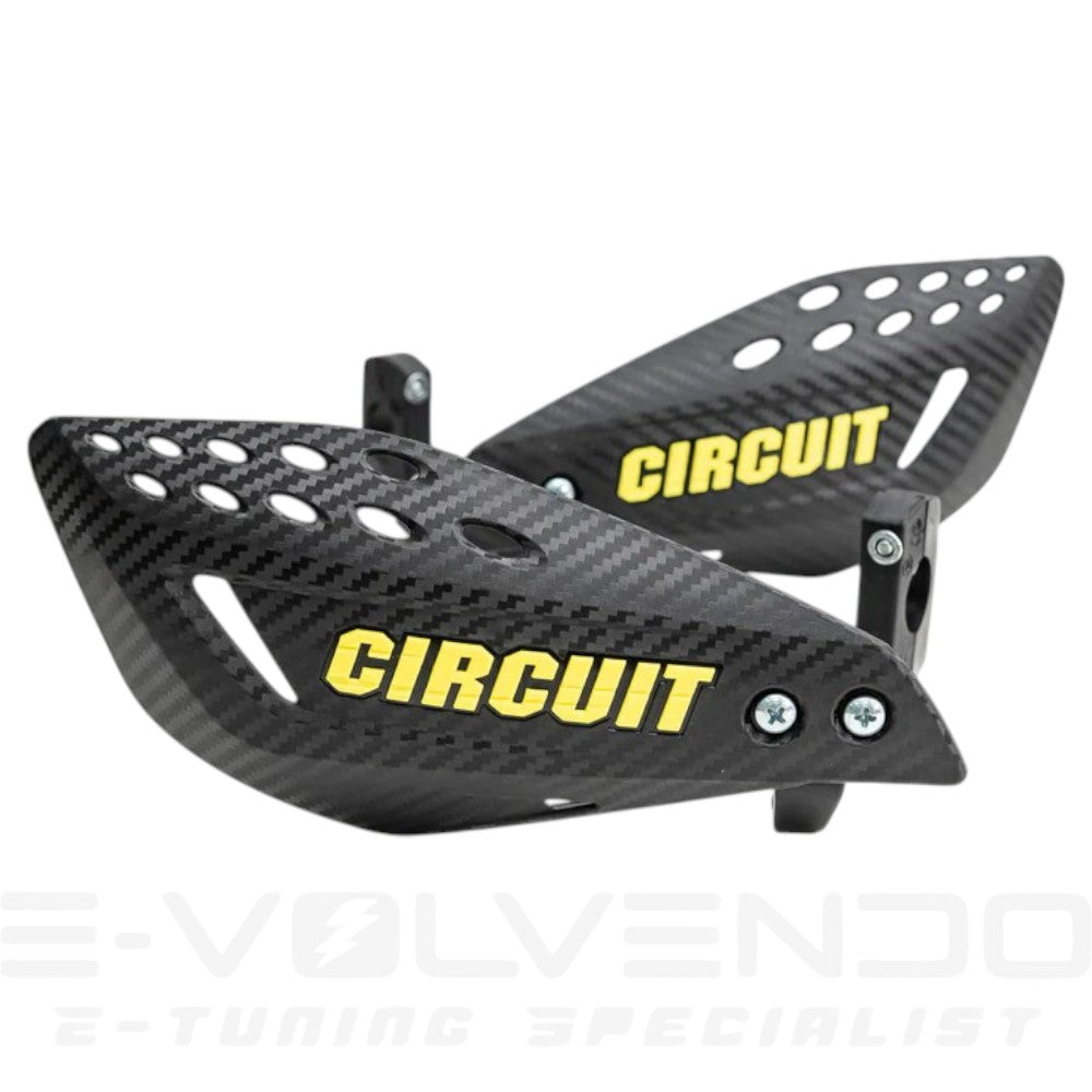 The Circuit Vector Carbon Handguards are designed to offer maximum protection and an aggressive look for your enduro, motocross, or motard bike. Made from high-resistance plastic material, these handguards provide optimal defense against impacts, debris, and weather elements, while maintaining a lightweight structure that doesn't compromise handling.