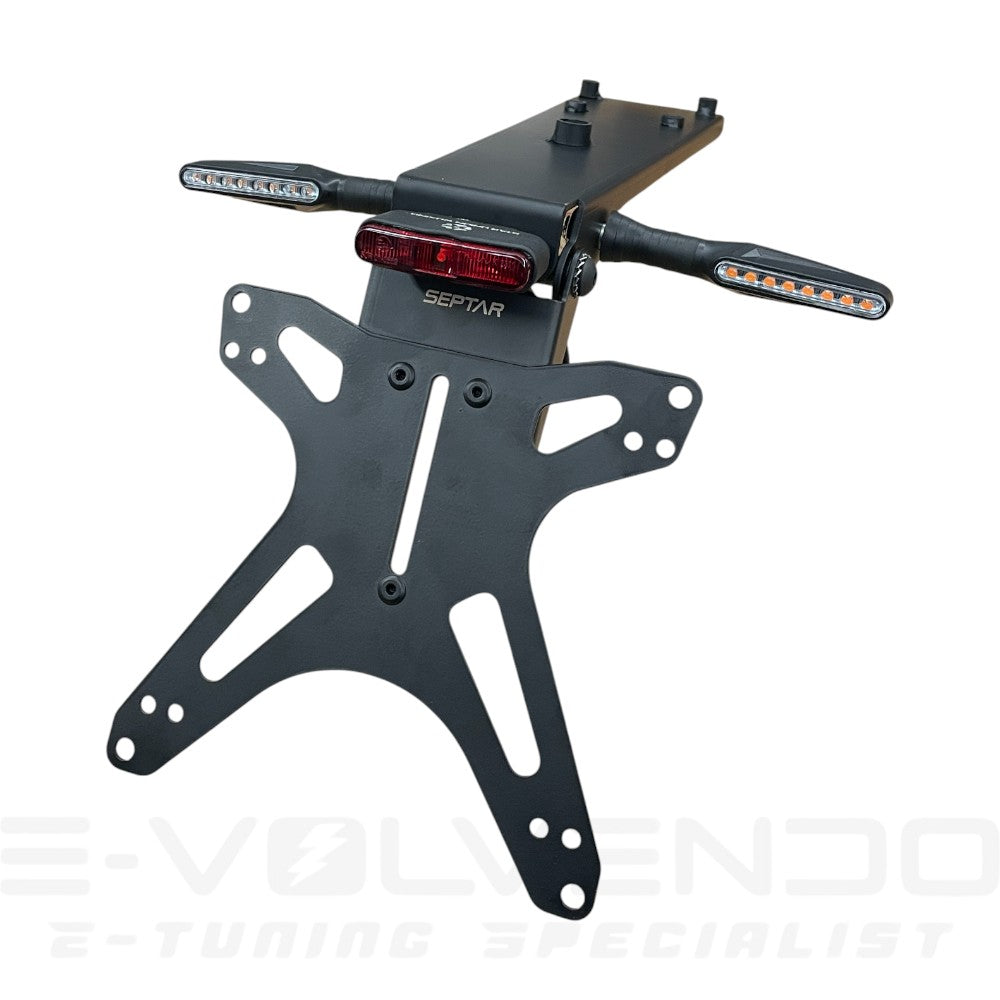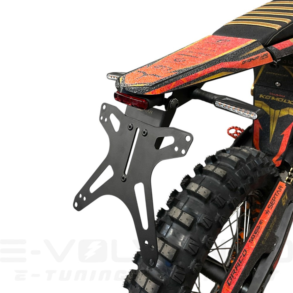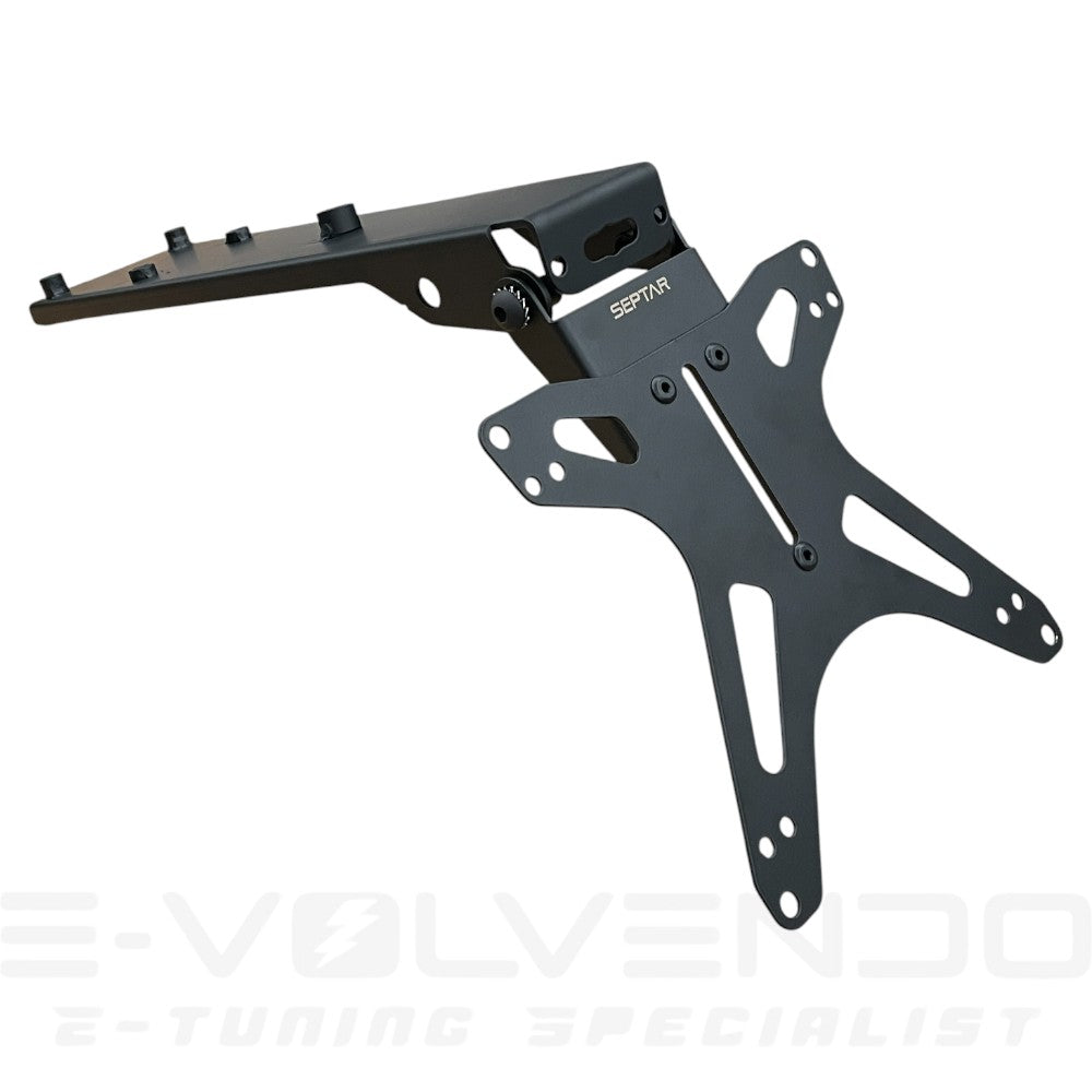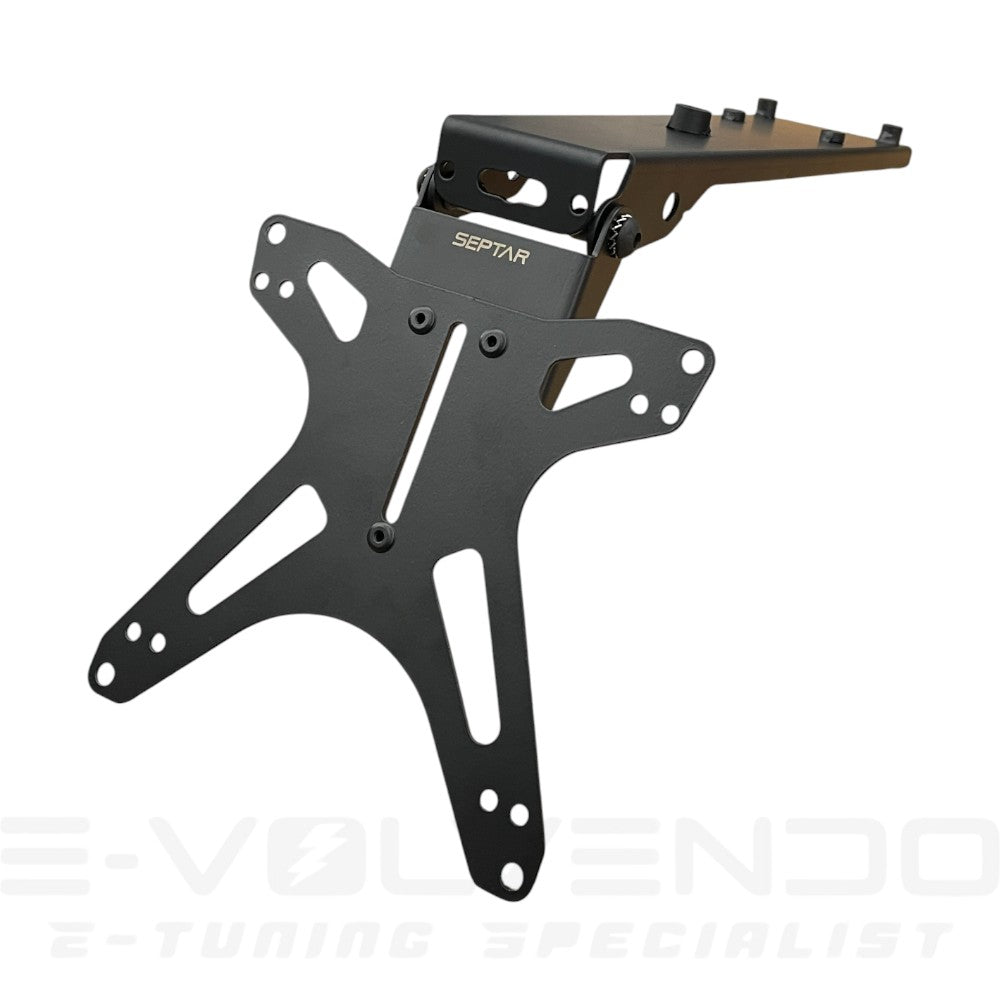 Il portatarga dedicato con inclinazione regolabile di SEPTAR è una soluzione di alta qualità adatta a Talaria KOMODO. Realizzato in acciaio verniciato a polvere, questo portatarga offre una durata eccezionale e una resistenza alla corrosione, garantendo che mantenga il suo aspetto elegante nel corso del tempo.